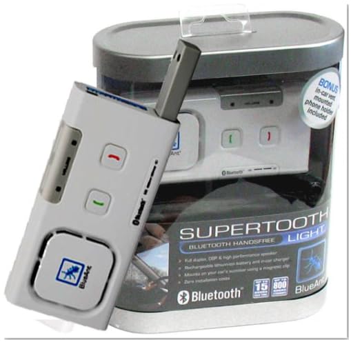 Supertooth Light Bluetooth Handsfree Speakerphone Powerful, Stylish and Crystal Clear Stylish in design, easy to use and with no installation requirements, the new BlueAnt Supertooth Light offers the latest in sun-visor mounted handsfree speakerphone technology. Currently, the most powerful speakerphone on the market today, the BlueAnt Supertooth Light incorporates the very latest technology from Cambridge Silicon Radio (CSR). Its outstanding audio quality is achieved via the integration of the cutting edge Clear Voice Capture (CVC) Digital Signal Processor (DSP) technology, providing truly superior sound. The BlueAnt Supertooth Light uses real-time audio to process any echo or background noise resulting in the improvement of the sound quality of the users voice regardless of whether the car is stationery or travelling at high speed. It also adjusts sound levels to compensate for loud engine noise or external noise created when the windows are wound down. Easily mounted on the cars sun-visor, the BlueAnt Supertooth Light can be paired with up to five devices, supports voice dial activation, redial and call reject and also has a retractable sliding microphone.