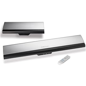 Introducing the Altec Lansing Voice of the Theatre PT8051 with its capable 125-watt total output. It features unique, NXT Digital flat-panel drivers for optimum sound quality from within two slim-profile cabinets. It replaces a traditional, cumbersome A/V receiver and is perfect for any flat surface, or can be easily wall mounted under your TV. The rear speaker is wireless. The cabinets are made of anodized aluminum for good looks, strength and durability. And the PT8051 provides outstanding acoustic output as well as surprising flexibility when it comes to controlling how sound is directed. Includes universal remote and wall mounting brackets for front and rear speakers. Subwoofer output for enhanced bass using an optional powered subwoofer Two slim-profile cabinets, that's it! No complicated A/V receiver or multiple speakers required Strong, durable, and discreet. Control your speaker system and most of your components from a single remote. Included wall-mounting brackets make installation a cinch