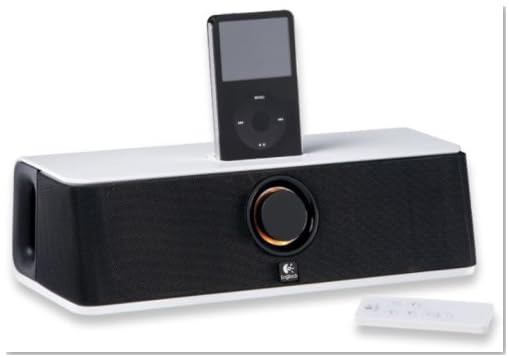 With its lightweight design, metal grilles, and protective case, the Logitech AudioStation Express is the perfect portable companion for your iPod. Enjoy full-sized audio performance in your home using AC power or on the go using battery power. AudioStation Express charges your iPod while docked, and lets you view podcasts on your TV using the composite video output. It also supports MP3 players and iPods without Universal Dock Connectors with an auxilliary 3.5 mm audio input jack.