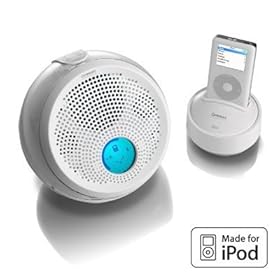 Overview: From the Boombox to the WalkmanTM, AM radio to XMTM, the DiscmanTM to the nano®, recorded music has undergone an evolution in portability. Oregon Scientific pushes the progression of transportable tunes with the iBall. Go ahead, take your music further. Features: * Advanced 2.4 GHz, adaptive frequency hopping spread spectrum (FHSS) wireless technology delivers crystal clear digital stereo audio up to 100 feet * Three-speaker array system with ported bass cavity provides a smooth and powerful listening experience * Adjustable treble and bass * Built-in remote control enables iPod operation wirelessly directly from the iBall * Easy to read LCD display illuminates the time, volume, bass, treble, wireless signal strength, input selection, play/pause status and battery power * Runs six to eight hours on rechargeable batteries or from AC adaptor, both included * Charges iPod and synchronizes with iTunes® through standard 30-pin connection to USB or Firewire port connections for your Mac/ PC * Compatible with Apple iPod, iPod mini, iPod nano, and iPod shuffleTM (seven iPod adaptors included, iPod shuffle adaptor sold separately) * Auxiliary stereo line-in mini-plug for use with one additional audio source * S-video and A/V stereo line-out mini-plug for listening and viewing through other A/V components (i.e. stereo, TV) * Target Age Group: 14 - 18 years of age Package Contents: * Wireless speaker * Transmitter dock * Docking tray x 7 * 9V / 2A AC adapter for wireless speaker * 9V / 800mA AC adapter for transmitter dock * Rechargeable batteries x 6 * Battery cap to enable battery recharging x 1 * Wall-mount unit * Screws for wall-mount unit x 4 * Allen key * Lint-free cloth * User manual * Quick start guide