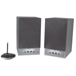 Enjoy high-quality stereo or surround sound without the hassle of running speaker wires throughout the house with this pair of RCA wireless speakers. Ideal when teamed with a traditional stereo receiver or as rear surround speakers in a comprehensive 5.1-channel system, the RC970s receive their signal from a three-channel transmitter, which connects to your receiver via an included 6-foot audio cord. Once setup is complete, you can locate the speakers anywhere in the room provided an electrical outlet is nearby. The wireless system is great for wide-open rooms where speaker cable would otherwise run across walkways, or for listeners who just want a clean, uncluttered look.