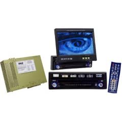 Pyle Audio's stylish, in-dash PLTVD7IN entertainment system features a dynamic, 7-inch, widescreen LCD that's invisible when off but flips up on a motorized arm when it's time to watch TV (VHF/UHF) or play a DVD. The unit's integrated tuner and amplifier delivers 18 full-range watts per channel x 4 (into 4-ohm speakers) and features convenient RCA jacks for easy hook-up to external audio and/or video sources.